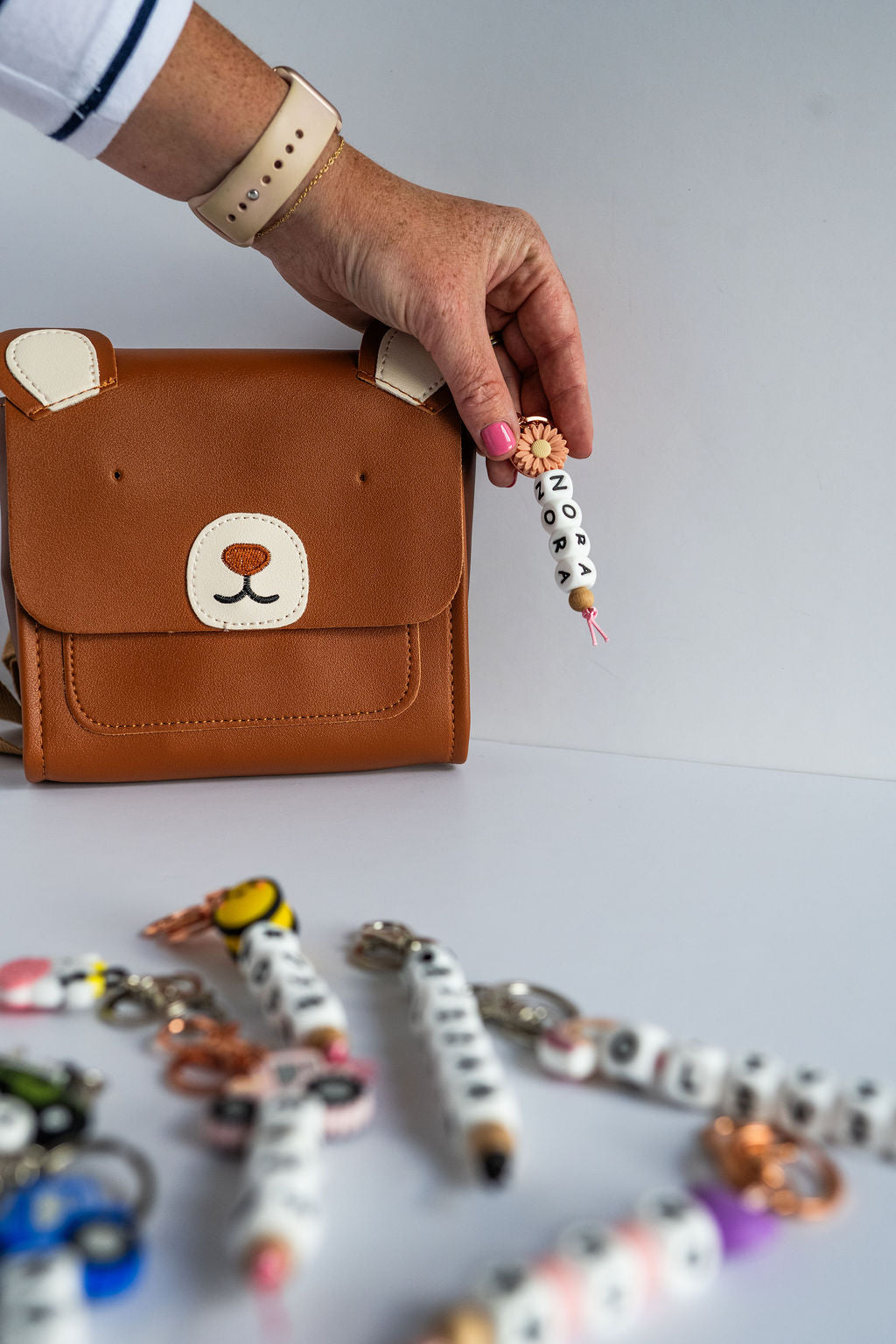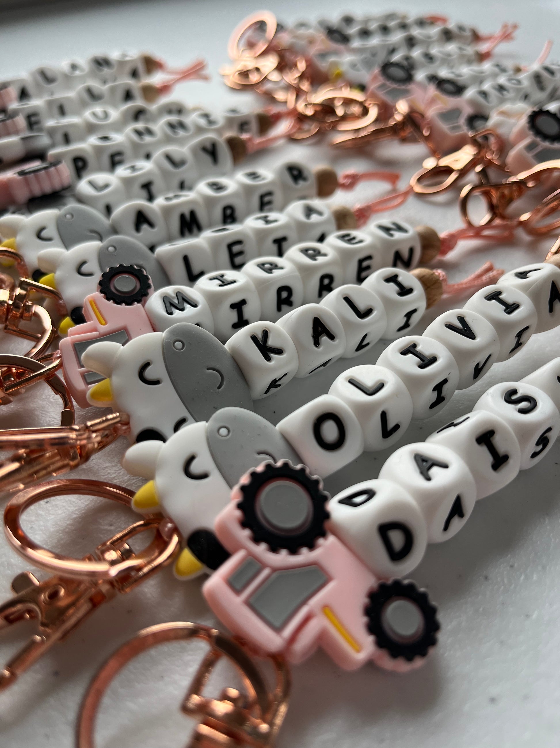 This little section is filled with non teething treats for your littles; personalised bag charms which can be used on their school bags, pencil cases and lunch bags. Suitable for 3 years + old