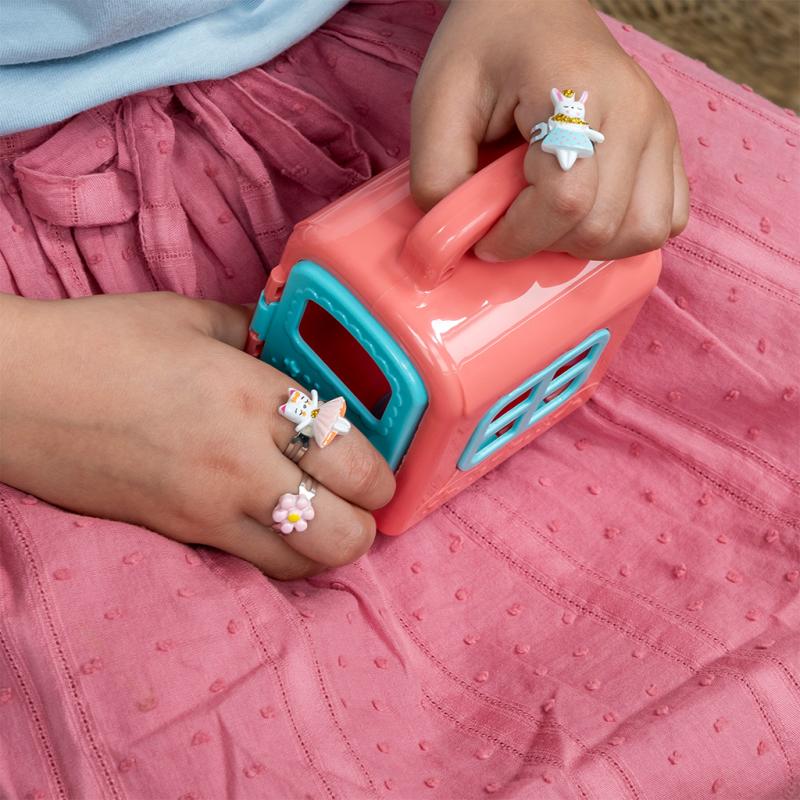 This set of three kids' rings is perfect for little ones who love charming accessories. Featuring a beautifully dressed bunny rabbit, an adorable cat and a pink flower, each ring is brimming with cuteness.